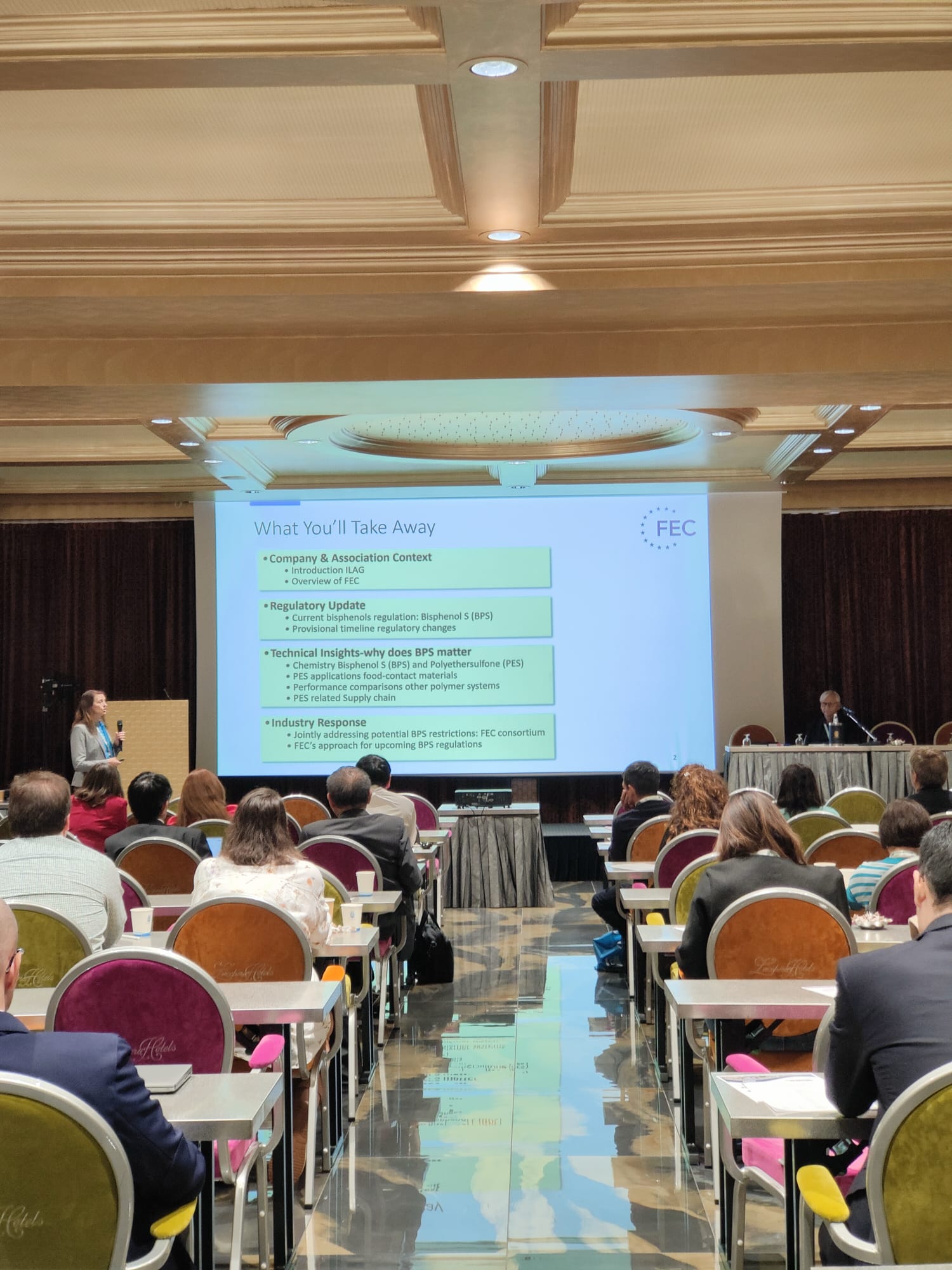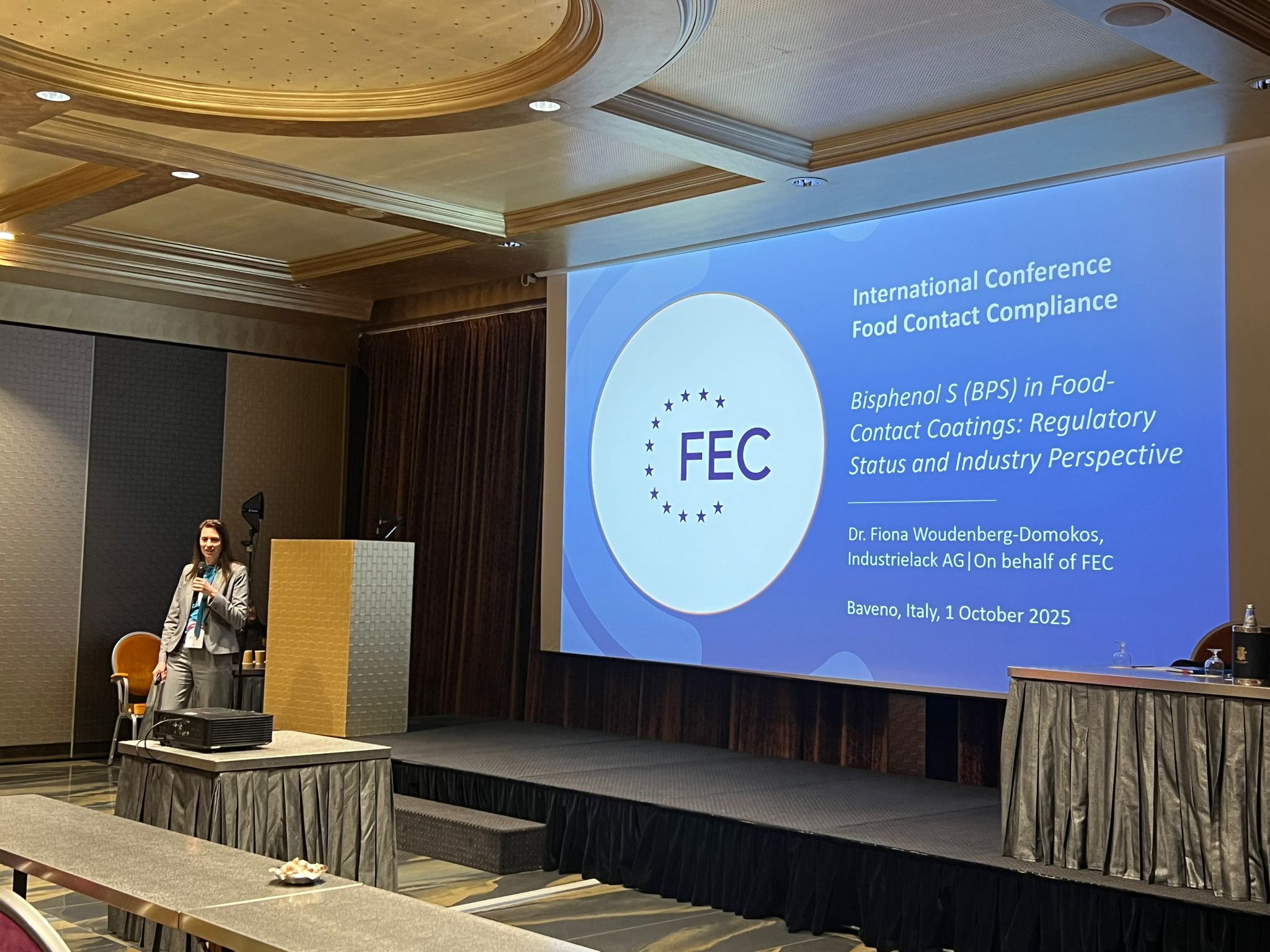 Im Rahmen des Programms präsentierte Dr. Fiona Woudenberg-Domokos, Head of Regulatory Affairs bei ILAG Industrielack AG, im Namen der European Cook- and Bakeware Association (FEC) ihren Vortrag „Bisphenol S (BPS) in Food-Contact Coatings – Regulatory Status and Industry Perspective“.